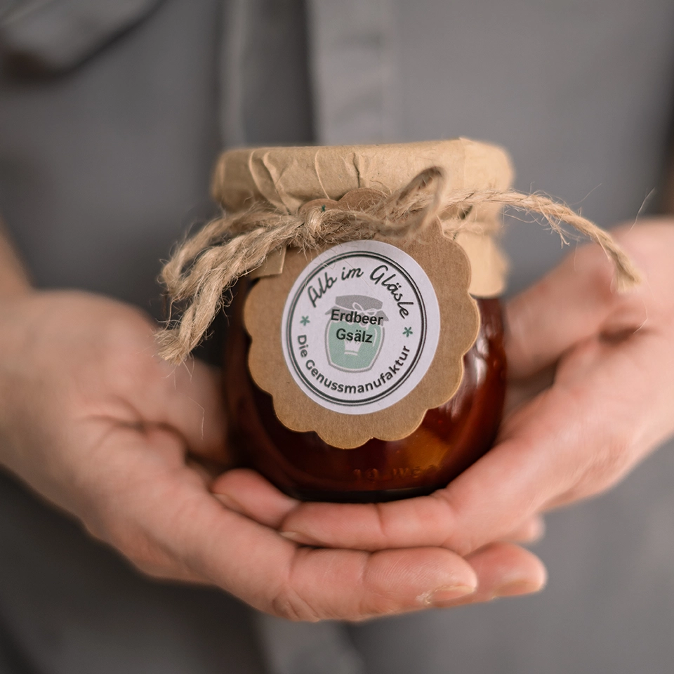 Gsälz – der schwäbische Ausdruck für Marmelade oder Konfitüre – steht für puren Fruchtgenuss. Dieses Erdbeer-Gsälz ist ein absolutes Muss für alle, die den süßen Geschmack reifer Erdbeeren lieben. Mit seinem intensiven Aroma und der feinen, cremigen Konsistenz zaubert es ein Stück Sommer auf den Teller. Ob klassisch aufs Frühstücksbrot oder als fruchtige Verfeinerung von Desserts – dieser zeitlose Liebling unter den Fruchtaufstrichen sorgt immer für einen köstlichen Genussmoment.