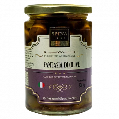 Fantasia di Olive mit extra nativem Olivenöl vereint schwarze und grüne Oliven, Kapern und Perponi in einem Glas. Diese mediterrane Mischung sorgt für ein intensives Geschmackserlebnis und ist perfekt als Antipasti oder Beilage zu einem gemütlichen Abend. Einfach öffnen, genießen und das italienische Lebensgefühl erleben.