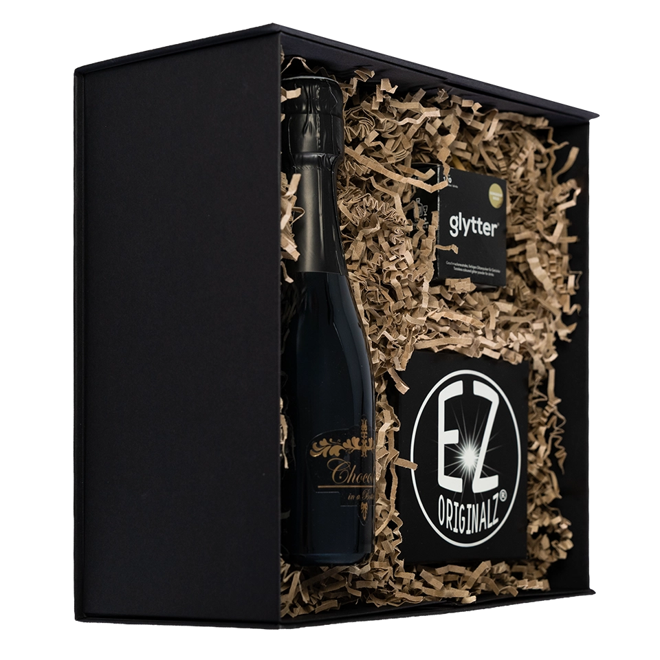 Diese besondere Geschenkbox verbindet außergewöhnliche Geschmackserlebnisse mit einem funkelnden Präsentationsmoment. „Chocolate in a Bottle“, ein edler Gourmet-Schaumwein aus Südfrankreich aus Blanc de Blancs-Trauben, begeistert mit feinen Noten von dunkler Schokolade und Haselnuss. Für einen glänzenden Effekt sorgt essbares, goldfarbenes Glitzerpulver, das jedes Getränk im Handumdrehen zum schimmernden Blickfang macht. Abgerundet wird die Box durch einen eleganten LED-Untersetzer in Marmoroptik, der mit warmweißem Licht für eine stimmungsvolle Atmosphäre sorgt und Drinks stilvoll in Szene setzt.