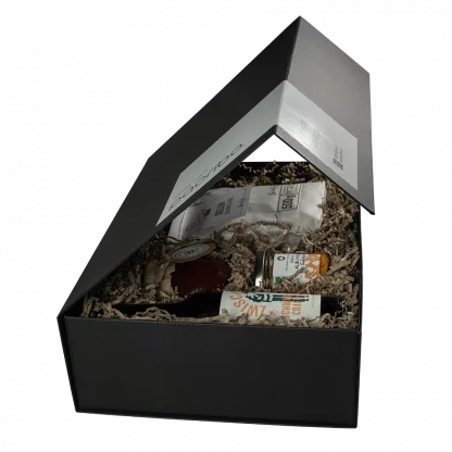 Entdecke unsere exklusive Premium-Geschenkbox, perfekt für anspruchsvolle Feinschmecker, die gerne neue kulinarische Welten erkunden. Die matte schwarze Box ist nicht nur eine stilvolle Präsentation, sondern auch vielseitig verwendbar, was Nachhaltigkeit in den Fokus rückt. Erlebe eine einzigartige Geschenkbox, ideal für besondere Anlässe.I'm a box. I'm ...