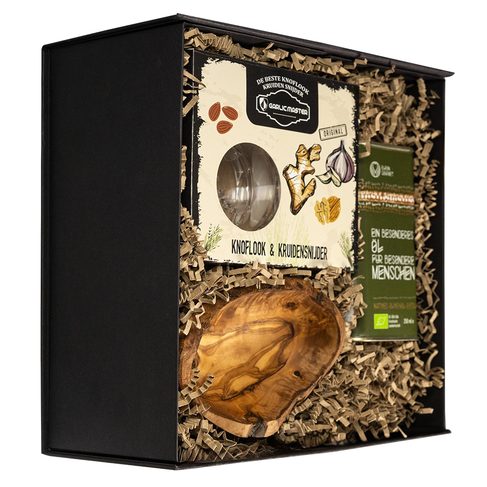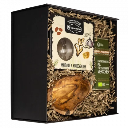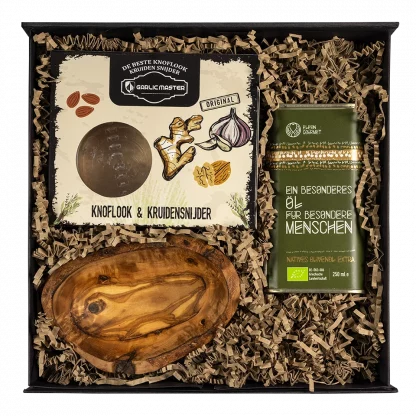 Das Antipasti StarterKit ist der ideale Begleiter für den Einstieg in die mediterrane Genusswelt. Der Garlic Master schält und zerkleinert Knoblauch, Zwiebeln, Nüsse oder Kräuter im Handumdrehen – ganz ohne Aufwand. Kombiniert mit dem hochwertigen Bio-Olivenöl entsteht im Nu ein aromatisches Knoblauchöl oder die Basis für eigene Dips. Für die stilvolle Präsentation sorgt die formschöne Olivenholzschale – perfekt für Oliven, Taralli, Chips & Co. und zugleich ein echter Blickfang auf jedem Tisch.