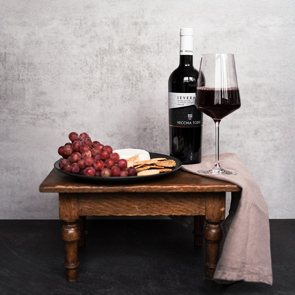 Aus selektierten Negroamaro- und Malvasia-Nera-Reben entsteht dieser rubinrote Leverano (13% vol.) mit leicht Rubinroten Reflexen, die im Laufe der Jahre zu granatroten Reflexen werden. Sein Bouquet ist vielseitig und intensiv. Im Geschmack voll, warm, intensiv und samtig mit angenehm bitterem Nachgeschmack. Der Leverano Rosso schmeckt besonders gut zu Nudelgerichten mit Fleischsauce, Braten am Spieß, Wild und gereiftem Käse.