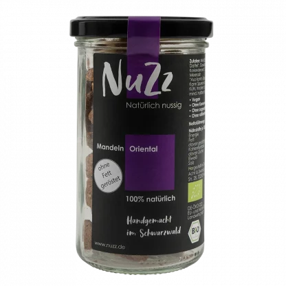 Diese Mandel nimmt dich mit auf eine Reise im Orientexpress – direkt hinein in den Duft des Gewürzbasars. Koriander, Kreuzkümmel, Kardamom, schwarzer Pfeffer, Zimt, Nelken, Paprika und Muskat vereinen sich mit einer feinen Süße aus der Dattel zu einem vollmundigen Geschmackserlebnis. Handgemacht im Schwarzwald, im Ofen frisch und ganz ohne zusätzliche Fette geröstet – vegan, ohne Konservierungsstoffe, ohne künstliche Aromen und ohne zugesetzten Zucker.