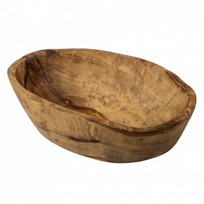 Diese einzigartige Schale mit den Maßen 10x13x5cm (BxLxH) wurde sorgfältig aus hochwertigem Olivenholz gefertigt und besticht durch ihre natürliche Maserung und warmen Farbtöne. Die längliche Form verleiht der Schale eine moderne Ästhetik und macht sie vielseitig einsetzbar. Perfekt für die Präsentation von Salaten, Obst oder Snacks – diese Schale wird zum Blickfang auf Ihrem Tisch. Das Olivenholz verleiht der Schale nicht nur eine charmante Optik, sondern macht sie auch robust und langlebig. Jede Schale ist ein Unikat, da die Maserung des Holzes einzigartig ist.
